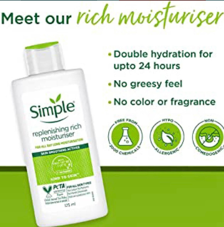 آبرسان و مرطوب کننده ریچ ۱۲۵میل rich برای پوستهای چرب سیمپل Simple