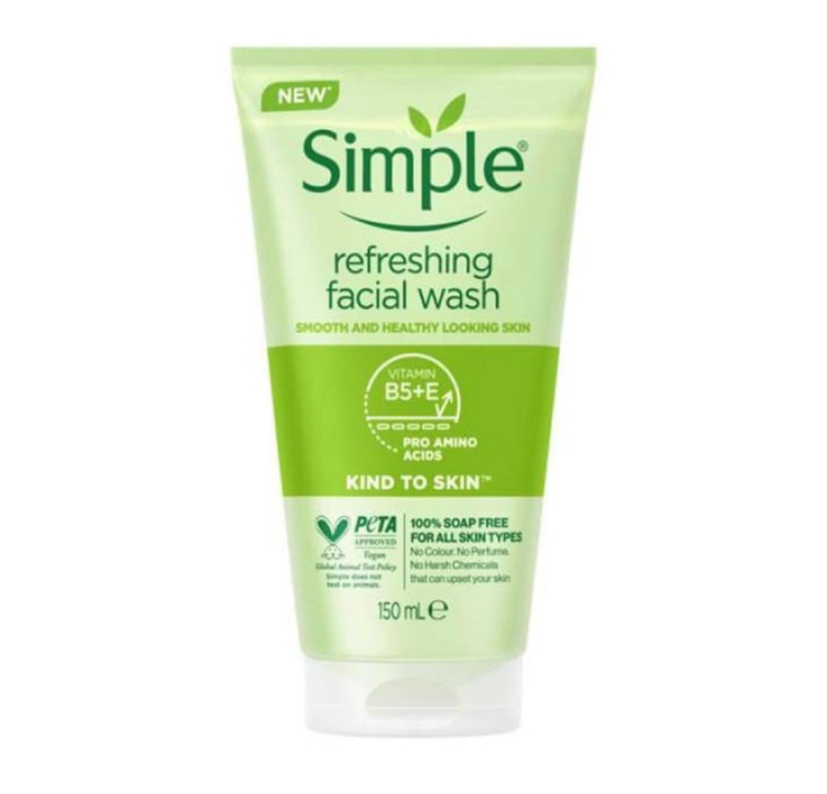 ژل شستشوی صورت Refreshing سیمپل Simple بدون ایجاد خشکی و کشیدگی در پوست آلودگی، ناخالصی و چربی را از صورت پاک می کند و موجب افزایش شادابی، نرمی و لطافت پوست می گردد. این محصول فاقد مواد صابونی، الکل و مواد عطری است و از این لحاظ مناسب انواع پوست حتی پوست های حساس می باشد. وجود ویتامین E و ویتامین B5 در این ژل شستشو علاوه بر تقویت بافت پوست به آبرسانی و حفظ رطوبت پوست صورت کمک می نماید.