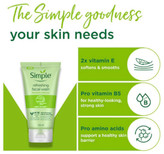این محصول برای تقویت شادابی و سلامت پوست از مواد مغذی پوست استفاده میکند. ویتامینها تأثیر بسیاری در زیبایی و درخشندگی پوست دارند و برند سیمپل با در نظر گرفتن این موضوع، ترکیبات مناسبی را برای این ژل انتخاب کرده است. ویتامین E به عنوان یک مرطوبکننده و نرمکننده پوست عمل میکند و باعث بازیابی قوام پوست میشود. این ویتامین یک آنتیاکسیدان بسیار قوی است که میتواند سلولهای پوست را در برابر عوامل مضر محیطی و رادیکالهای آزاد محافظت کرده و از تخریب بافت پوست جلوگیری کند. ویتامین E همچنین نقش مهمی در تولید کلاژن پوست دارد و باعث میشود چروکهای پوست کاهش یابند و پوست صاف و یکدست به نظر برسد.