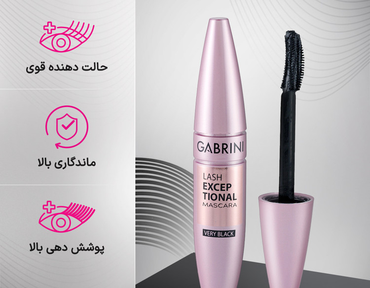 ریمل فوق مشکی Lash Exceptional گابرینی با رنگدانه های غنی و بسیار مشکی خود، جلوه بی نظیری به چشمان شما می بخشد. این ریمل مژه ها را بلند و پر کرده و خاصیت حالت دهندگی بی نظیری دارد. اپلیکاتور تخصصی ریمل حجم دهنده فوق مشکی Lash Exceptional گابرینی از جنس سیلیکون بوده و از این رو مژه ها را دانه دانه از هم جدا نموده و مانع از به هم چسبیدن آن ها می گردد؛ همچنین قسمت منحنی آن، به حالت دادن بیشتر هرچه بیشتر مژه ها کمک می نماید. ریمل حجم دهنده Lash Exceptional گابرینی یک محصول مناسب برای حجم دهی مژه ها می باشد که بدون ایجاد چسبندگی تک تک مژه های شما را حالت می دهد و هیچ گونه احساس سنگینی بر روی مژه ها احساس نخواهید کرد و تاثیری که روی مژه ها دارد مانند مژه مصنوعی های سه بعدی است. یکی از ویژگی های بارز ریمل حجم دهنده فوق مشکی گابرینی خاصیت ماندگاری بالا و ضد ریزش آن می باشد که پس از استفاده موجب سیاه شدن زیر چشم ها نشده و به راحتی شسته می شود. ریمل حجم دهنده فوق مشکی Lash Exceptional گابرینی فاقد مواد آلرژی زا می باشد که باعث ایجاد حساسیت در ناحیه چشم های شما نمی شود.