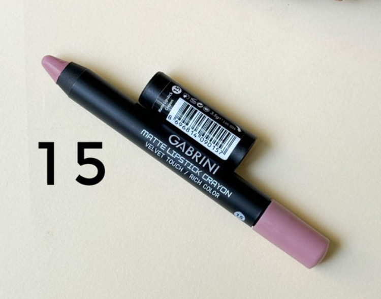 محصول کشور:ترکیه: رژلب مدادی مات گابرینی کد 15 فرمول مات و مخملی و نرم سرشار از ویتامین E کیفیت رنگ عالی غنی شده با مرطوب کننده بافت نرم و سبک غیر چرب پوشش دهی یکدست و زیبا بر روی لب دارای مواد مرطوب و تقویت کننده ی لب ماندگاری بالا ساخت ترکیه وزن: 3.5 گرم