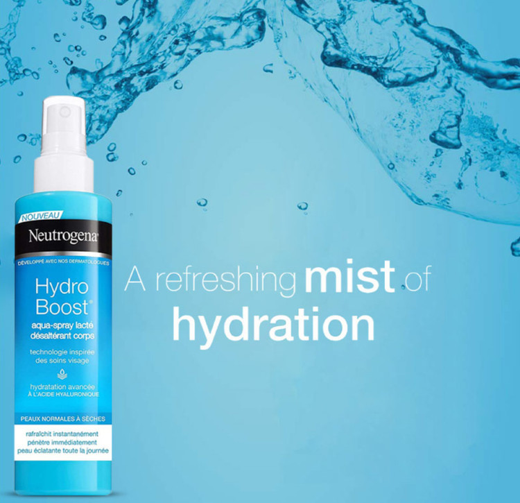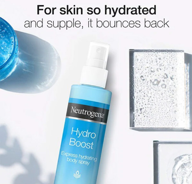 برند محبوب نوتروژینا در لاین محصولات Hydro Boost خود، اسپری آبرسان بدن با حجم ۲۰۰ میلیلیتر را تولید و به بازار عرضه کرده است. بستهبندی این آبرسان به صورت اسپری، استفاده از آن را راحتتر و سریعتر از لوسیون و کرمهای بدن میکند. فرمولاسیون این محصول سرشار از هیالورونیک اسید است که آبرسانی عمیق به پوست انجام داده و از پیری زودرس جلوگیری میکند. هیالورونیک اسید توانایی جذب رطوبت تا ۱۰۰۰ برابر وزن خود را دارد و با قرارگیری در فضای بین سلولی، پوستی هموار، نرم و آبرسانی شده را به ارمغان میآورد.